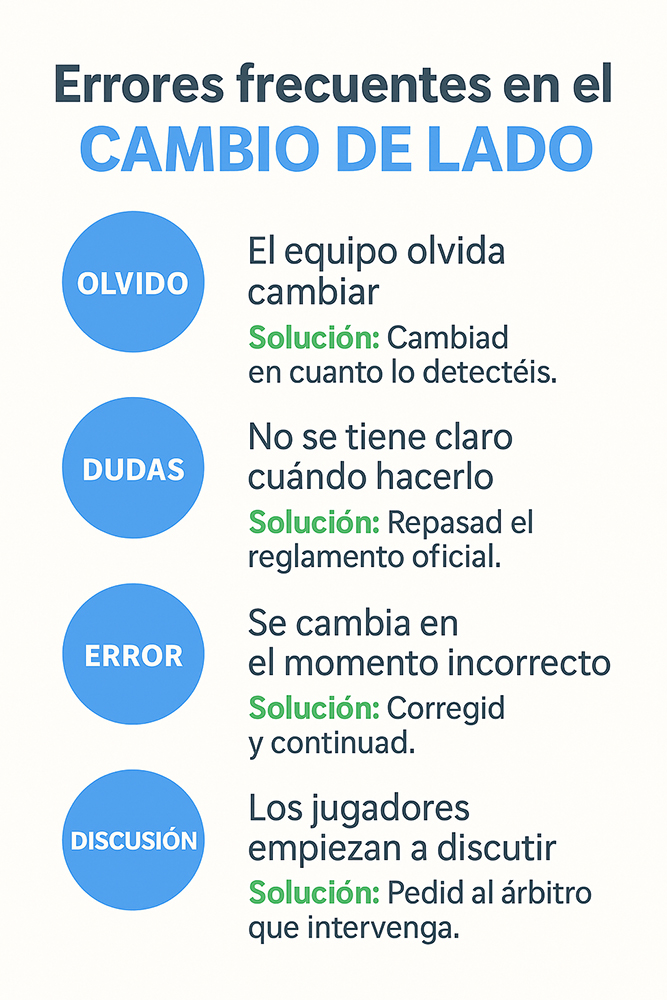 Si la competición define un formato especial (por tiempo o por sets), el cambio de lado se adapta a la normativa de ese torneo.