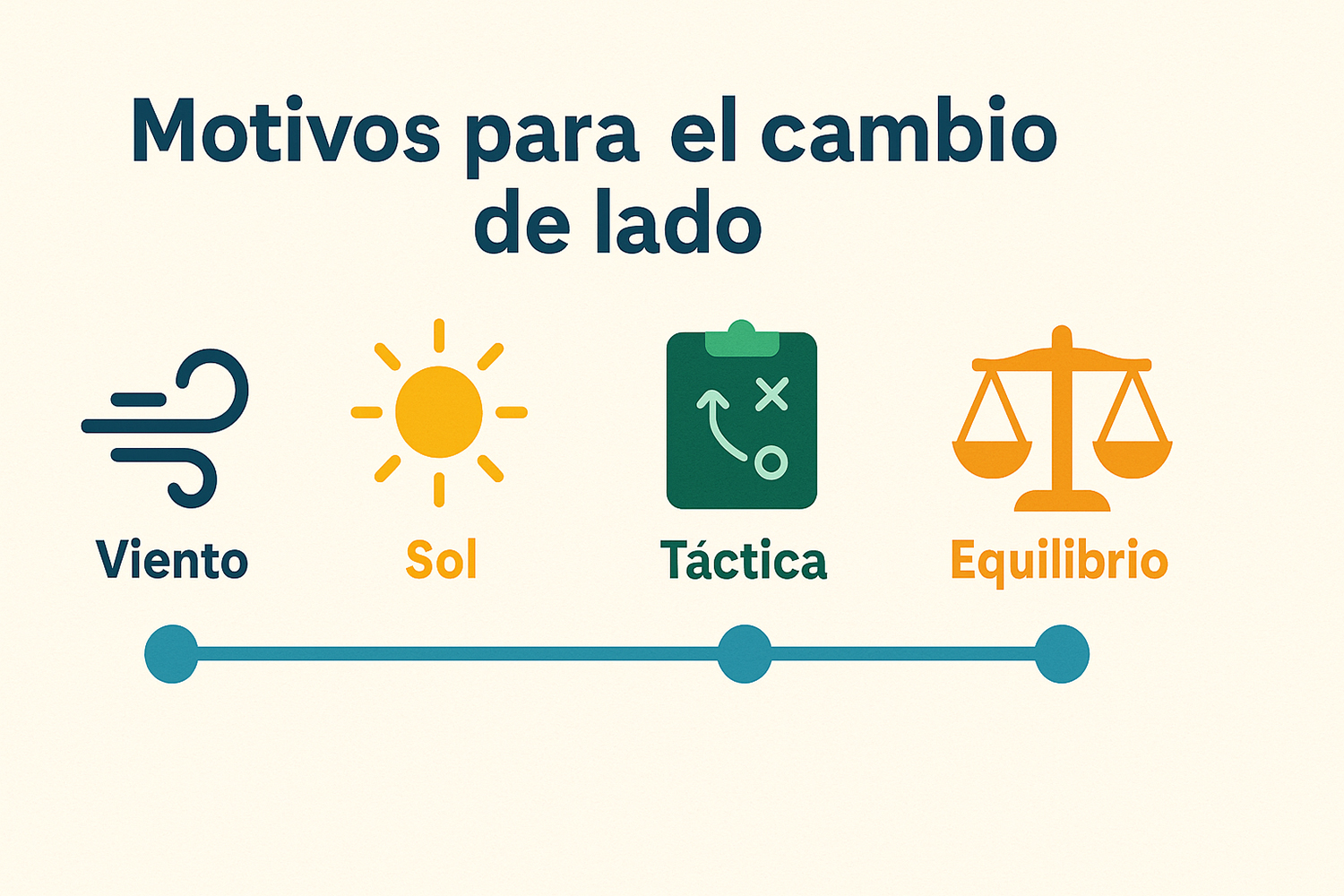 Por eso, el reglamento es claro: se cambia de lado al alcanzar ciertos puntos, y siempre se mantiene la secuencia de servicio.
