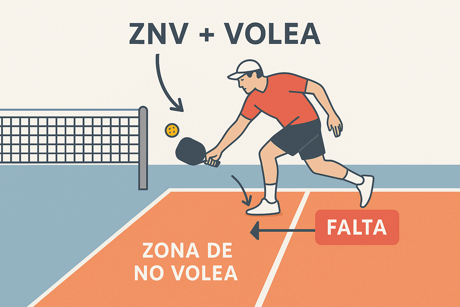 Una regla sagrada en pickleball: no puedes volear la pelota si estás dentro o tocando la Zona de No Volea.