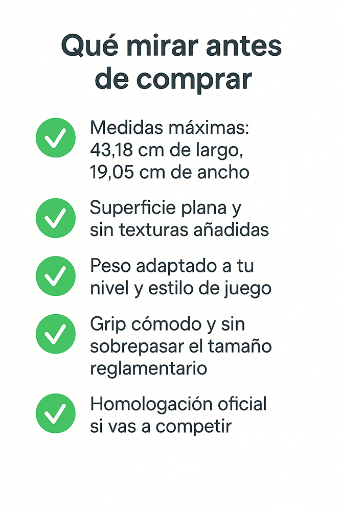 Ya seas principiante o competidor, elige siempre una pala que cumpla el reglamento y se adapte a tu estilo de juego.