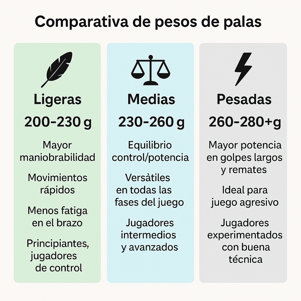 Pala media (230-260 g), núcleo híbrido, superficie de grafito o carbono |
