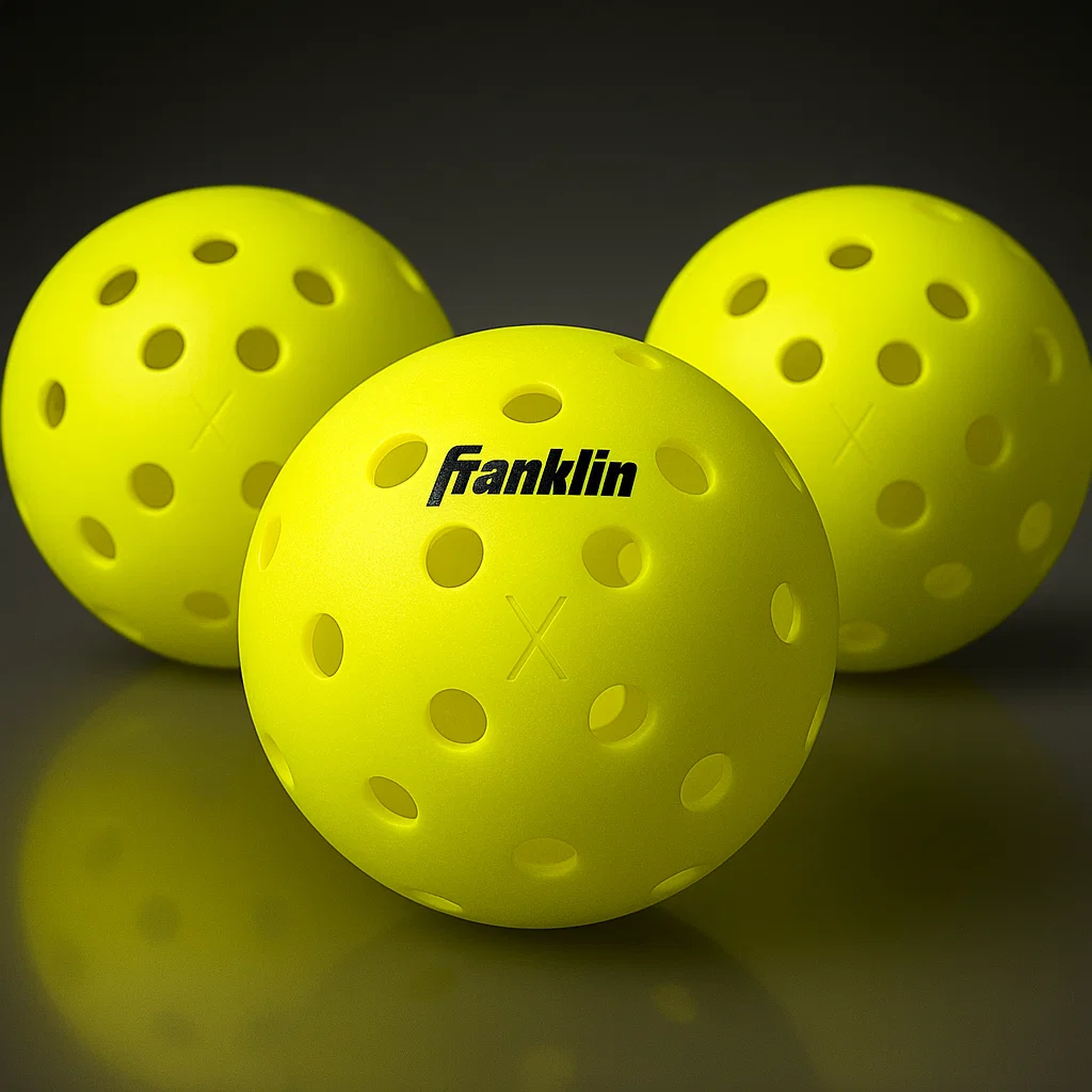 Las Franklin X-40 amarillas son la referencia mundial en pelotas de pickleball para exteriores. Fabricadas en polietileno (PE) de alta calidad mediante moldeo rotacional de una sola pieza, ofrecen una estructura más resistente que evita deformaciones, abolladuras y grietas incluso tras un uso intensivo en pista.