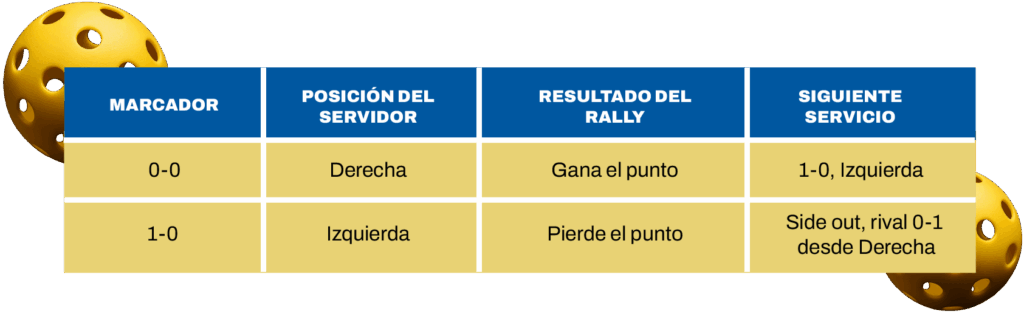 - Si tu puntuación es par (0, 2, 4…), sirves desde la derecha/par.