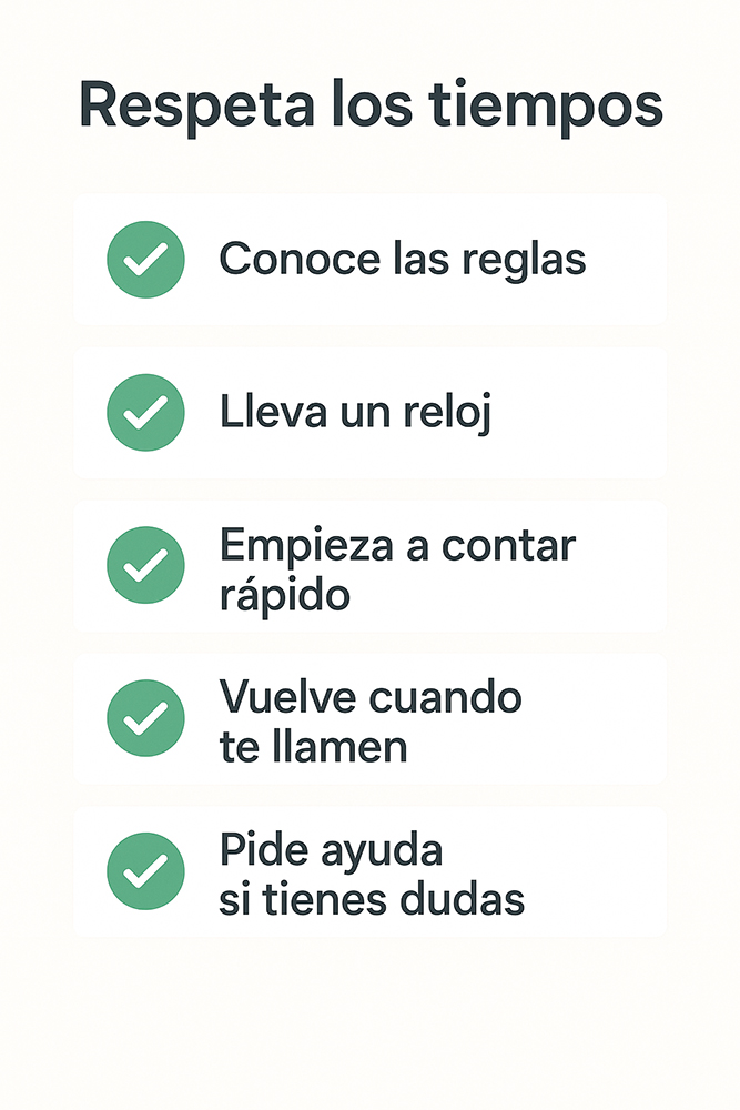 El árbitro o director de torneo controla el tiempo y puede aplicar el reglamento en caso de retraso.
