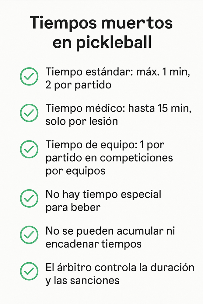 Checklist rápido de tiempos muertos en Pickleball