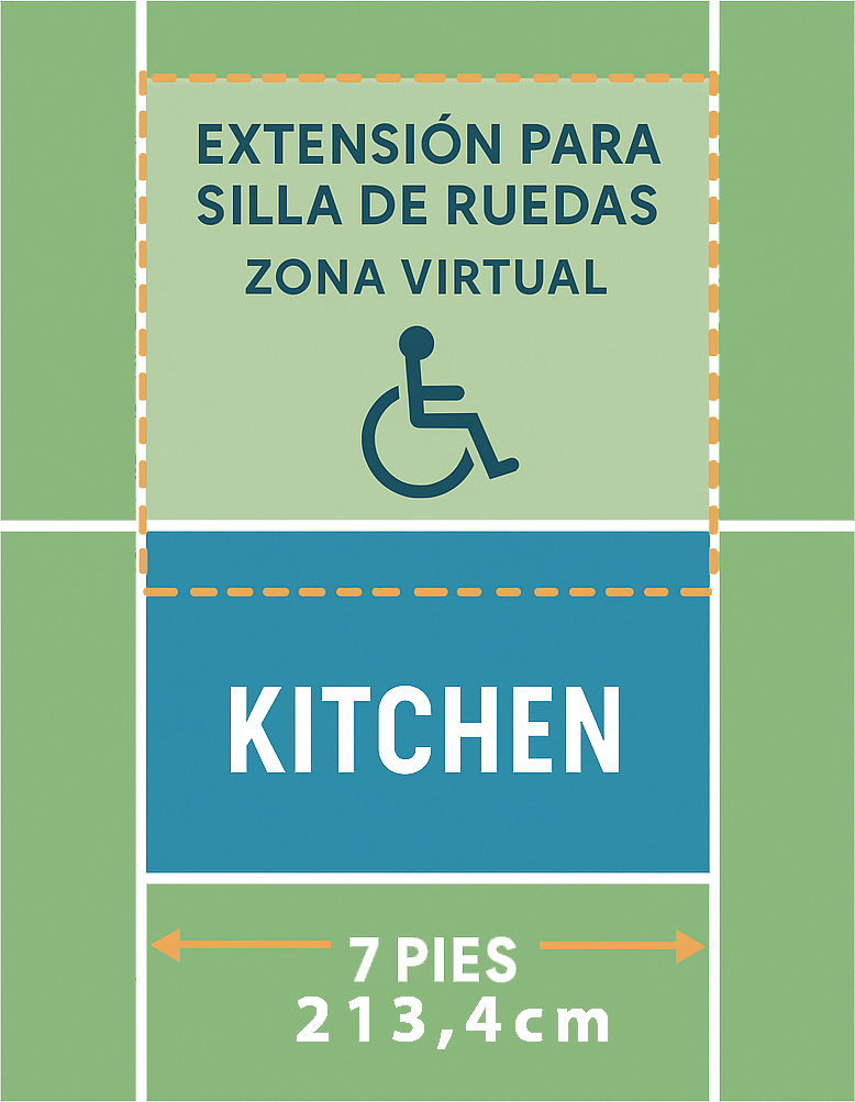 La Kitchen es un área rectangular que se extiende 7 pies (2,13 metros) desde la red hacia cada lado de la pista. Sus límites están marcados por líneas que forman parte de la zona, es decir, pisar la línea equivale a estar dentro de la Kitchen (Regla 2.B.3).