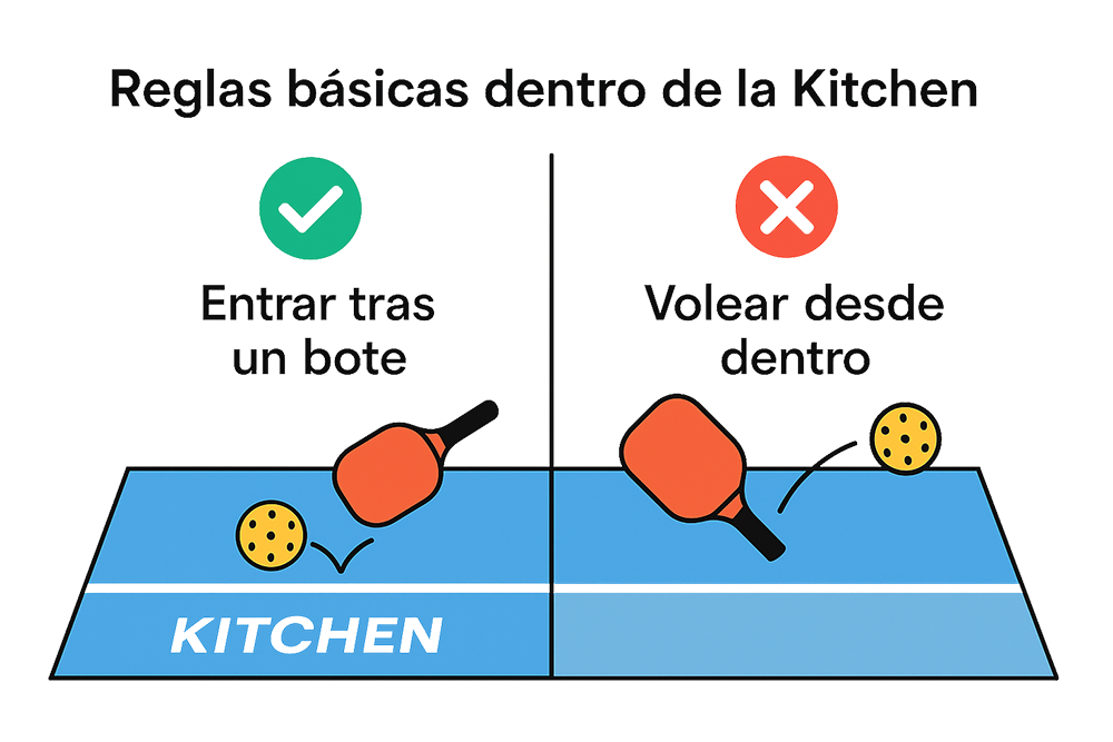 La Zona de No Volea (ZNV), conocida popularmente como la Kitchen, es uno de los elementos que hacen único el pickleball. Es un espacio pequeño en la pista que genera grandes dudas: ¿puedo entrar? ¿cuándo es falta? ¿qué diferencia hay entre pisar y golpear dentro? En esta guía completa, basada en el Reglamento USA Pickleball 2025, descubrirás cómo dominar la Kitchen, evitar faltas y usarla como ventaja táctica.